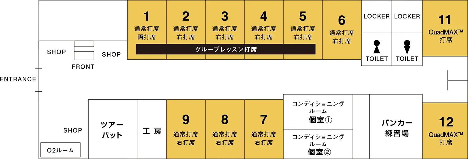 Evolvinでは通常の練習打席から、世界トップクラスのシェアを占める大手ゴルフシミュレーターメーカー「GOLFZON」のシミュレーターを導入しています。スイングの科学的な分析結果が表示され、問題点のカウンセリングを行ないフィジカルとスイングの両面から改善方法をお伝えいたします。2つの高速カメラセンサーによってクラブの軌跡、インパクト、ボールの動きを測定し、ドロー、フェード、トラブルショットを再現します。